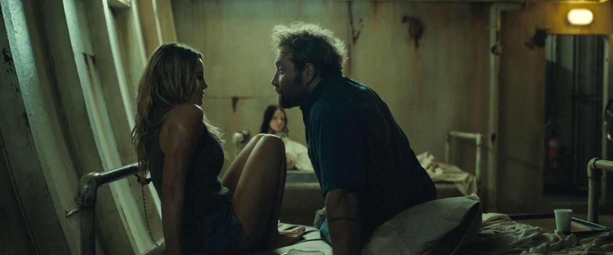 Helyette akcióba lép Courtney sorozatgyilkosa, akiről már a nyitányból kiderül, hogy a jópofizó helyi tahó maszkja mögött valóságos szörnyeteg rejtőzik. S miután Zephyr kényszerű vendégévé válik a borzalmas titkokat őrző halászhajójának, elindul a késhegynyi pszichológiai horrorral megtámogatott slasher-csörte, amelynek a helyszíne a tenger. A Veszélyes állatok rákfenéje, hogy végtelenül kiszámítható: minden fordulatát előre ismerjük, semmi meglepetést nem tartogat. Elmélyedhetett volna hajszálnyit jobban a karaktereiben, legalább annyira, hogy felcsillanjon a nézőben a kötődés érzete, vagy megismertethette volna jobban Courtney figurájának motivációit, legyenek azok bármennyire is hagymázasak – bennem még az is fölmerült, hogy hátha kapunk esetleg valami Ari Asteres folk-ceremóniát, de nem! -, de a Veszélyes állatok feszültsége úgy illan el, ahogy a felkoncolt emberi testekből csöpögő vér a háborgó tengerben. A fehér tajtékparipán érkező Moses karaktere például szó szerint leredukálódik ugyanolyan díszletelemmé, akárcsak a hajót kerülgető cápák.